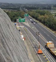 This project required remediation work on the batters along the Berkeley Cut section of the F6 Freeway, south of Wollongong, NSW. The works included the installation of a rock fall mesh and anchoring system on the rock cutting face, often conducted at a 90 degree angle up to 50m above this major 6 lane freeway.