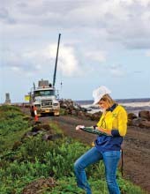 The location of the works required management of environmental conditions and associated safety risks due to minimal space on the breakwater.